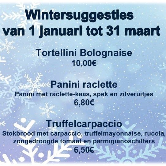 Of u kan genieten van homemade pasta en heerlijke vers belegde broodjes.